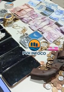 O grupo foi flagrado em duas casas localizadas nas ruas Candirú e Branquinha, no bairro Lagoa, zona Leste de Porto Velho, onde estavam escondidos arma de fogo, drogas e diversos objetos roubados, incluindo televisores, roupas e dinheiro.
