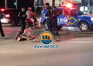 Na noite desta quarta-feira (03), um acidente de trânsito foi registrado no cruzamento da Rua Jatuarana com Sucupira, zona Sul de Porto Velho.
