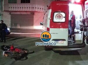 Na noite desta quarta-feira (03), um acidente de trânsito foi registrado no cruzamento da Rua Jatuarana com Sucupira, zona Sul de Porto Velho.