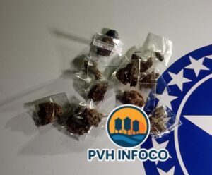 Na varredura pelo perímetro foram encontrados 12 invólucros de substância análoga à maconha, além de dinheiro trocado, caracterizando mercancia ilícita. Questionado, o jovem admitiu ser o dono da droga e que destinava a substância para comercialização.