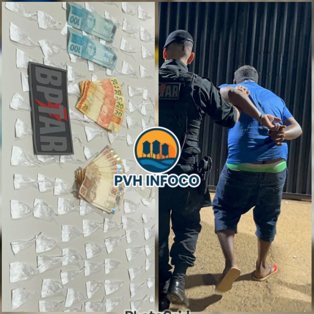 Um homem foi preso por tráfico de drogas na noite deste domingo (05), na Rua Atlas, bairro Três Marias, zona leste de Porto Velho.