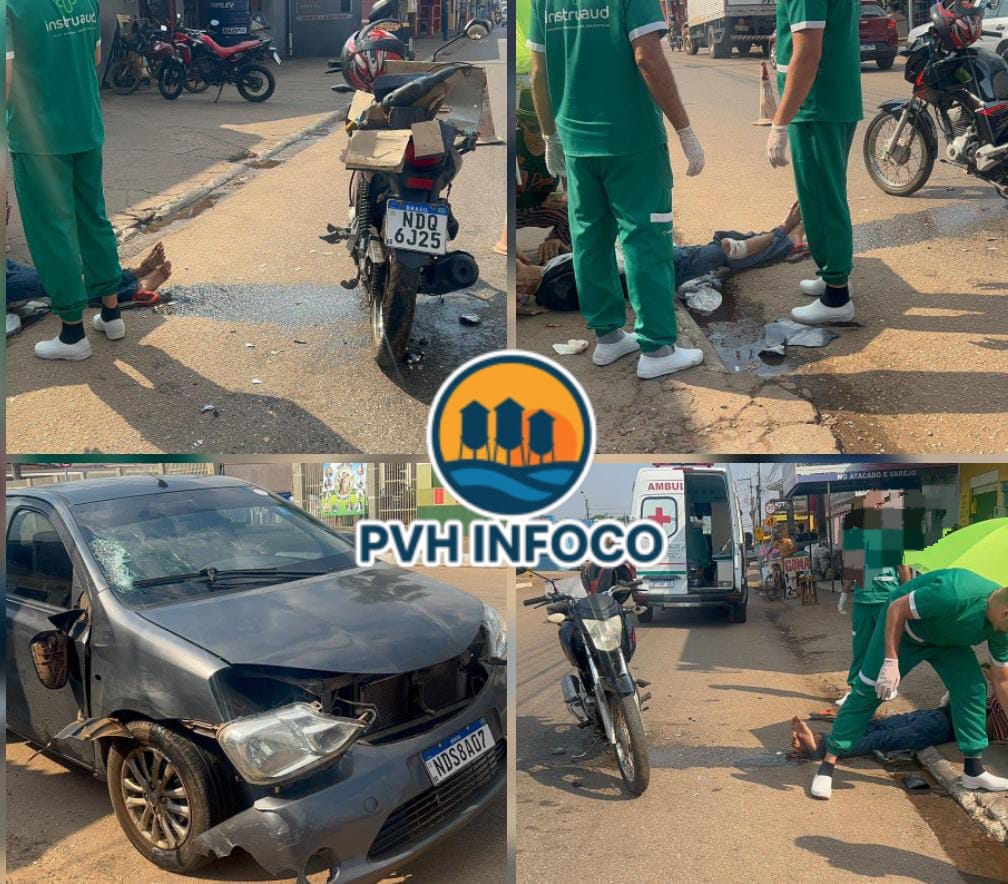 Na tarde deste sábado (30), um idoso ficou ferido após um acidente envolvendo carro e moto na Avenida Campos Sales, nas proximidades da Jatuarana, zona sul de Porto Velho.