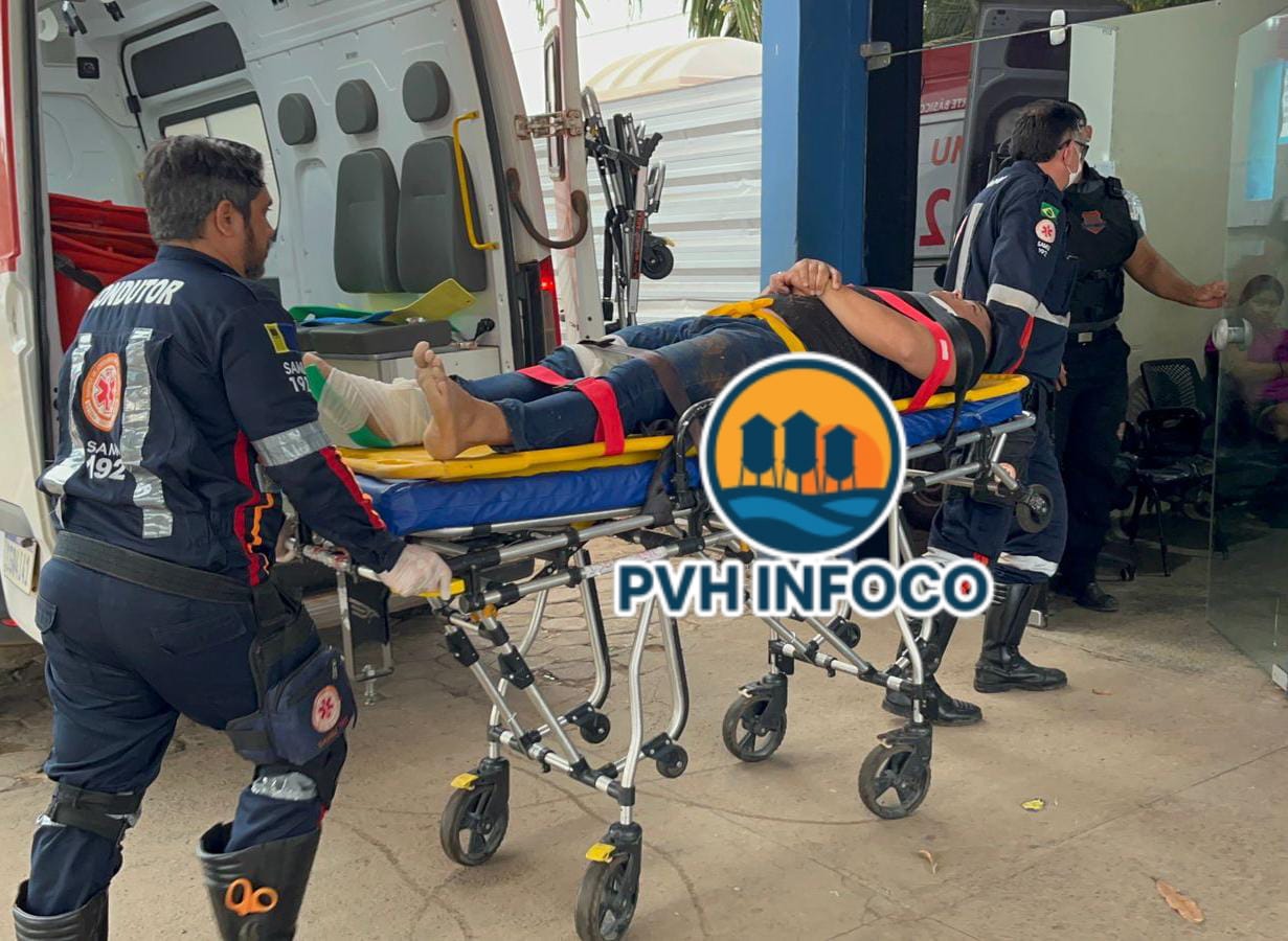Um motociclista ficou ferido na tarde deste sábado (20), após sofrer um acidente na Avenida Rio de Janeiro, nos fundos de um posto de combustíveis, no bairro Roque, em Porto Velho.
