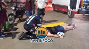 Um acidente envolvendo duas motocicletas foi registrado na noite desta sexta-feira (29), no cruzamento da Rua Pau Ferro com a Rua Arpa, em Porto Velho. Segundo informações, a condutora de uma Honda Biz seguia pela Rua Pau Ferro quando um motociclista saiu da Rua Arpa e acabou colidindo com outra moto.