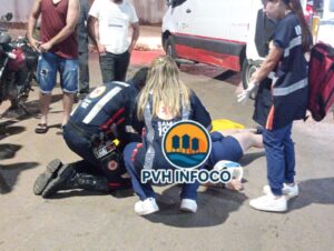 Um acidente envolvendo duas motocicletas foi registrado na noite desta sexta-feira (29), no cruzamento da Rua Pau Ferro com a Rua Arpa, em Porto Velho. Segundo informações, a condutora de uma Honda Biz seguia pela Rua Pau Ferro quando um motociclista saiu da Rua Arpa e acabou colidindo com outra moto.