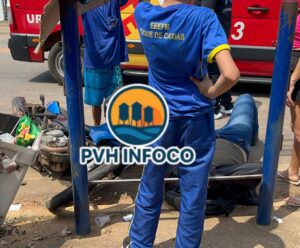 Um grave acidente deixou um motociclista ferido na tarde desta sexta-feira (29), em frente à Escola Duque de Caxias, na Avenida Farquar, região central de Porto Velho.