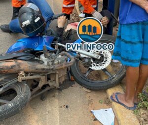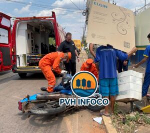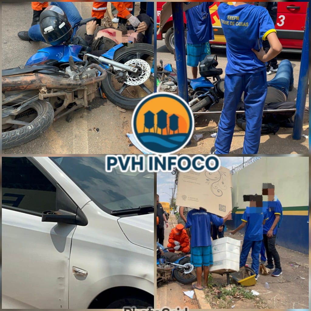 Um grave acidente deixou um motociclista ferido na tarde desta sexta-feira (29), em frente à Escola Duque de Caxias, na Avenida Farquar, região central de Porto Velho.